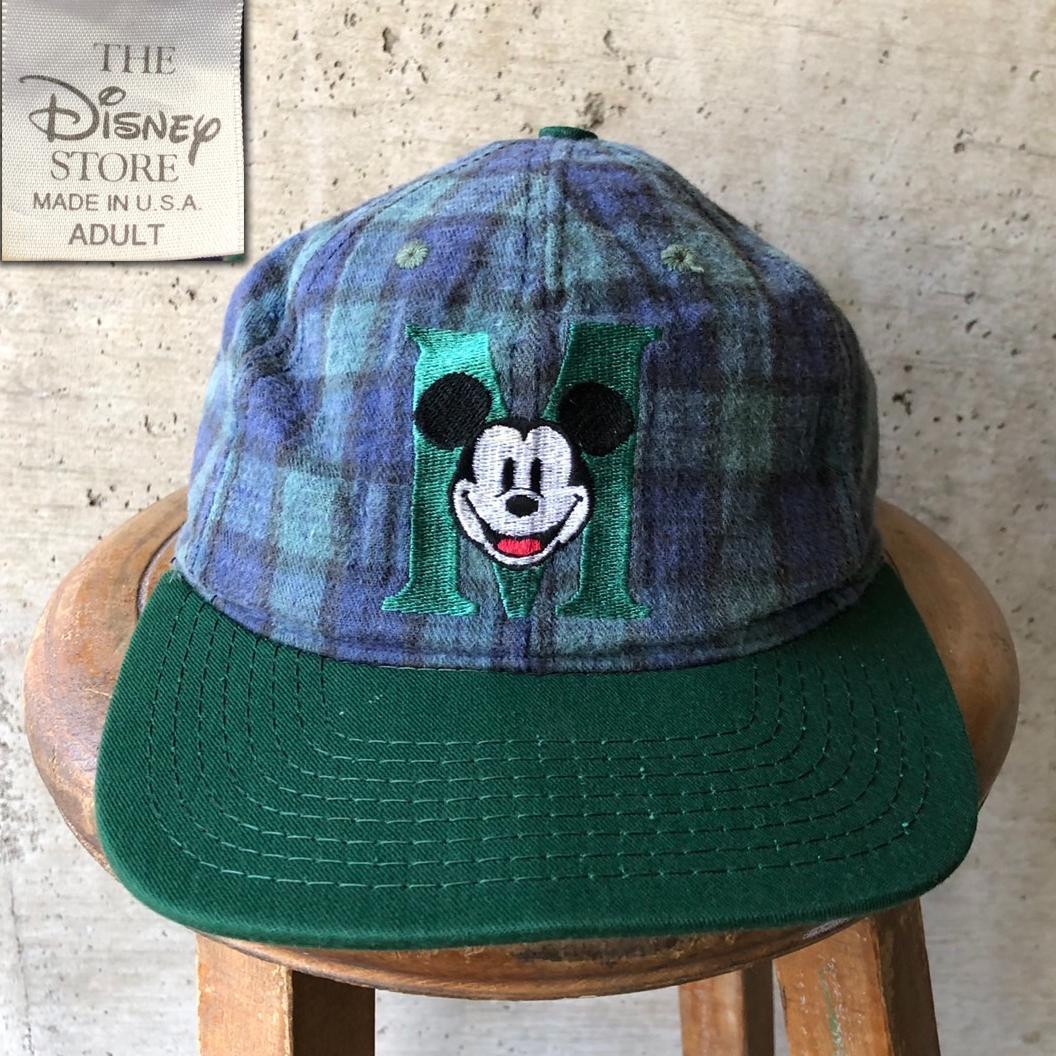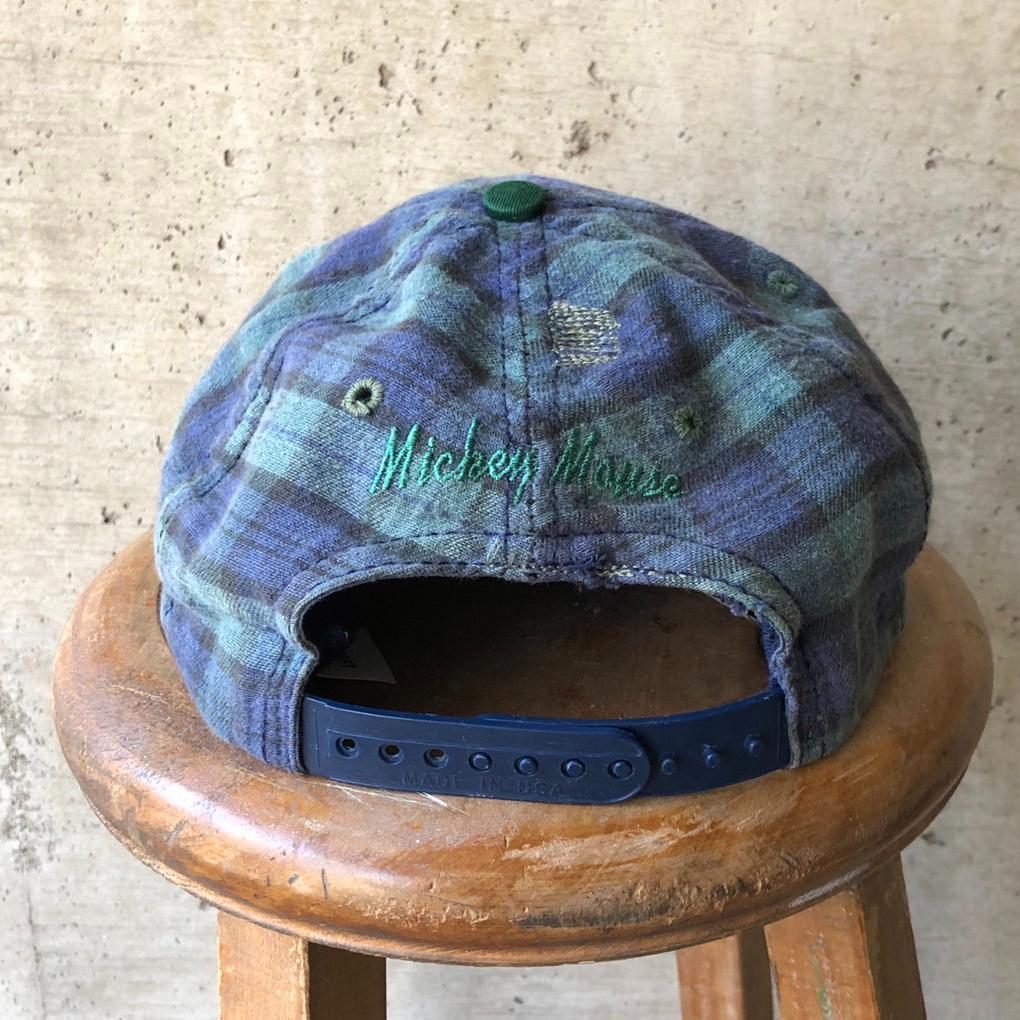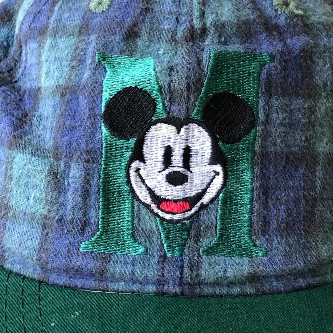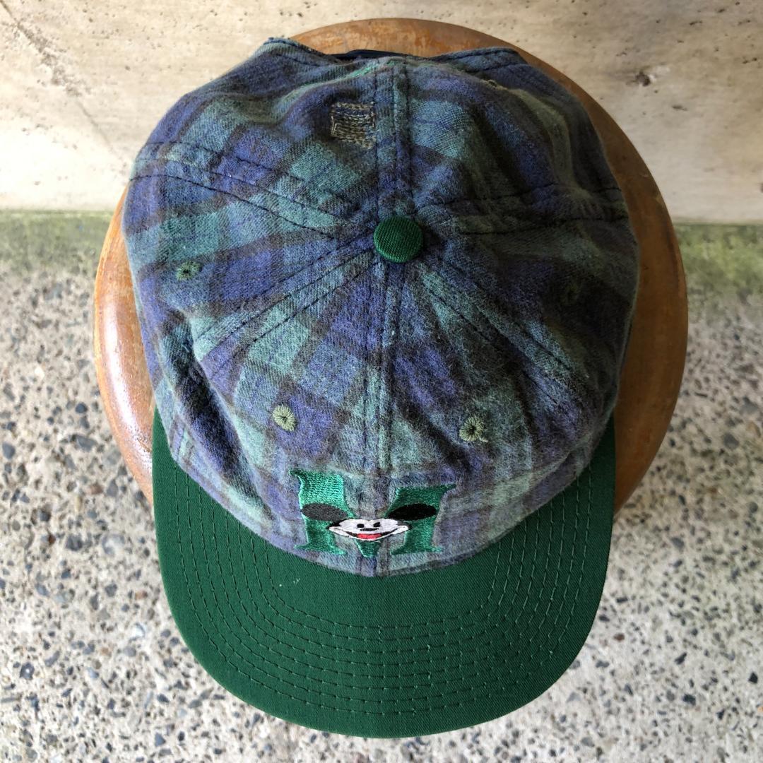 GG306 90s 帽子 ベースボールキャップ ミッキー ディズニー USA製 サイズフリー タータンチェック ディズニータグ 青色 緑色 收藏
