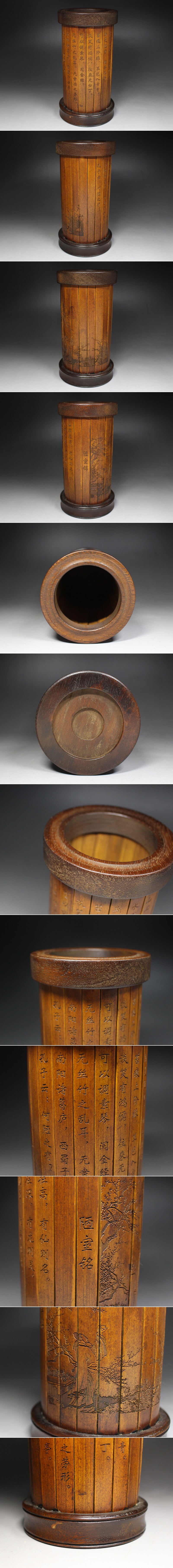 ■古竹■筆筒・筆立・詩経彫・超細密細工・書道具・唐物・f8146h 收藏