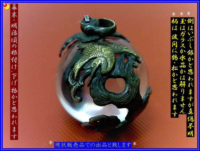 幕末.明治頃■蔵出/雰囲気良い根付 下げ物□印籠 とんぼ玉 時代物 武具 東洋彫刻 いぶし銀水晶玉 現状販売品となります 收藏