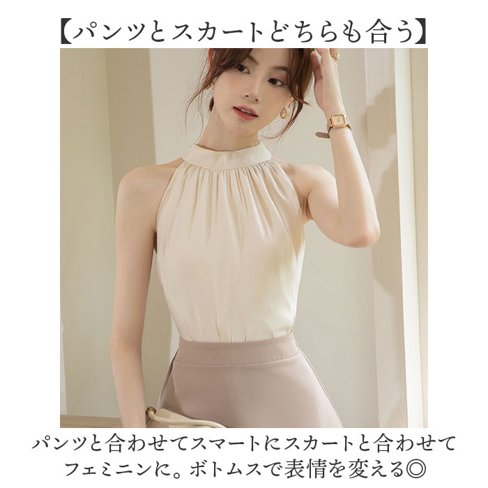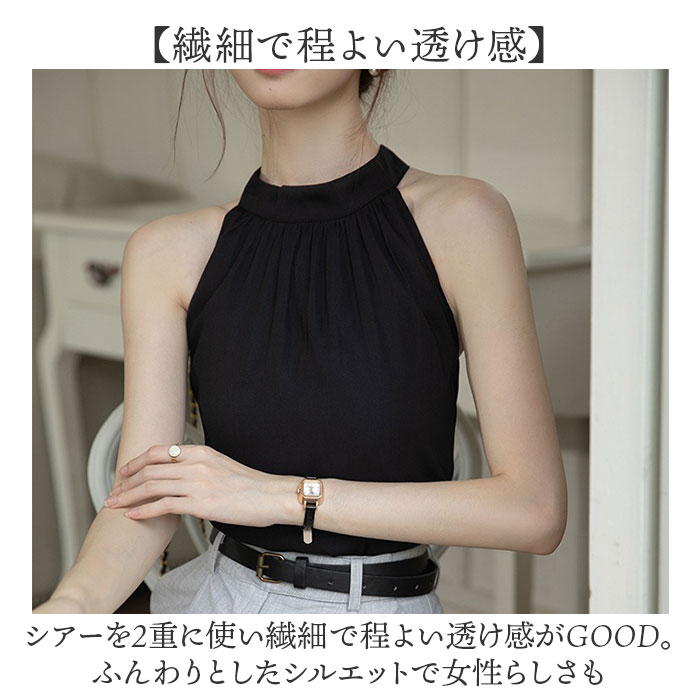 ☆ ベージュ ☆ L ☆ タンクトップ レディース 涼感 ノースリーブ トップス ノースリーブ タンクトップ シフォンブラウス ホルターネック 收藏