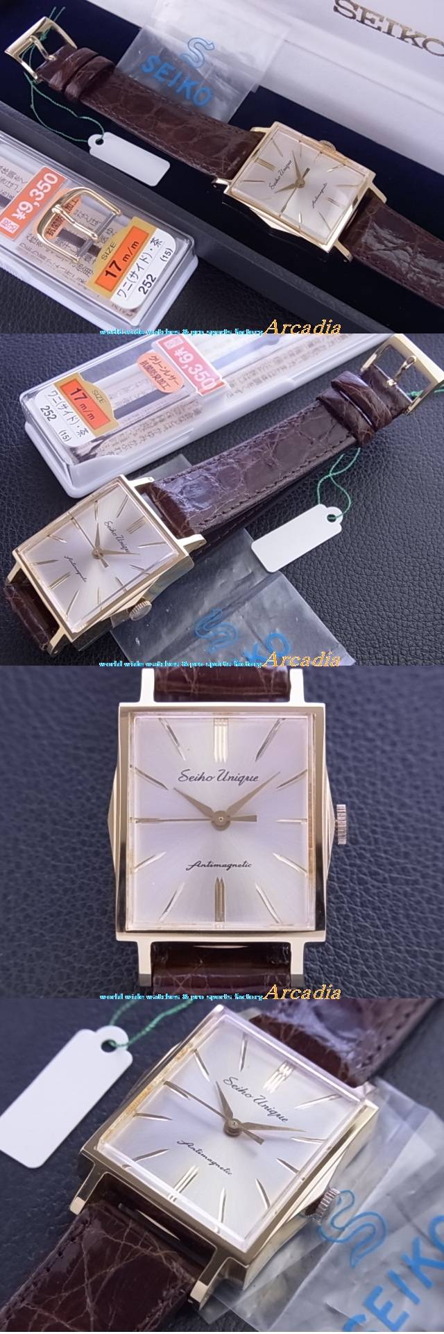 ◆デッド極貴重 1955年亀戸精工舎製最初期型 SEIKO UNIQUE ANTIMAGNETIC ユニーク 10石 角大型金張り側 彫ゴールドクサビ文字盤 完品OH済♪ 收藏