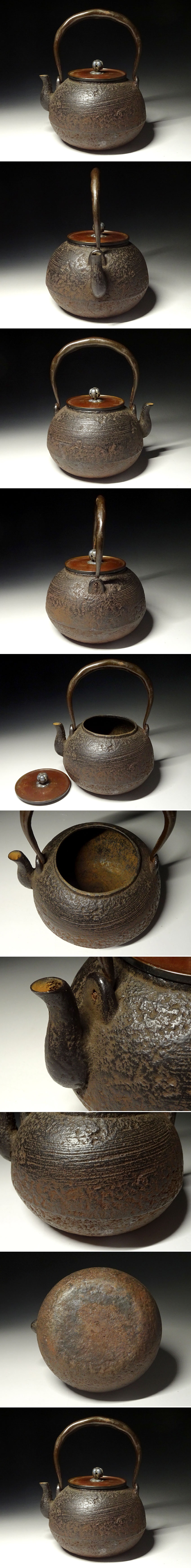 緑屋c■ 鉄瓶 刷毛目 銅蓋 銀色摘 湯沸かし 煎茶道具 bnit/9-277/33#80 收藏