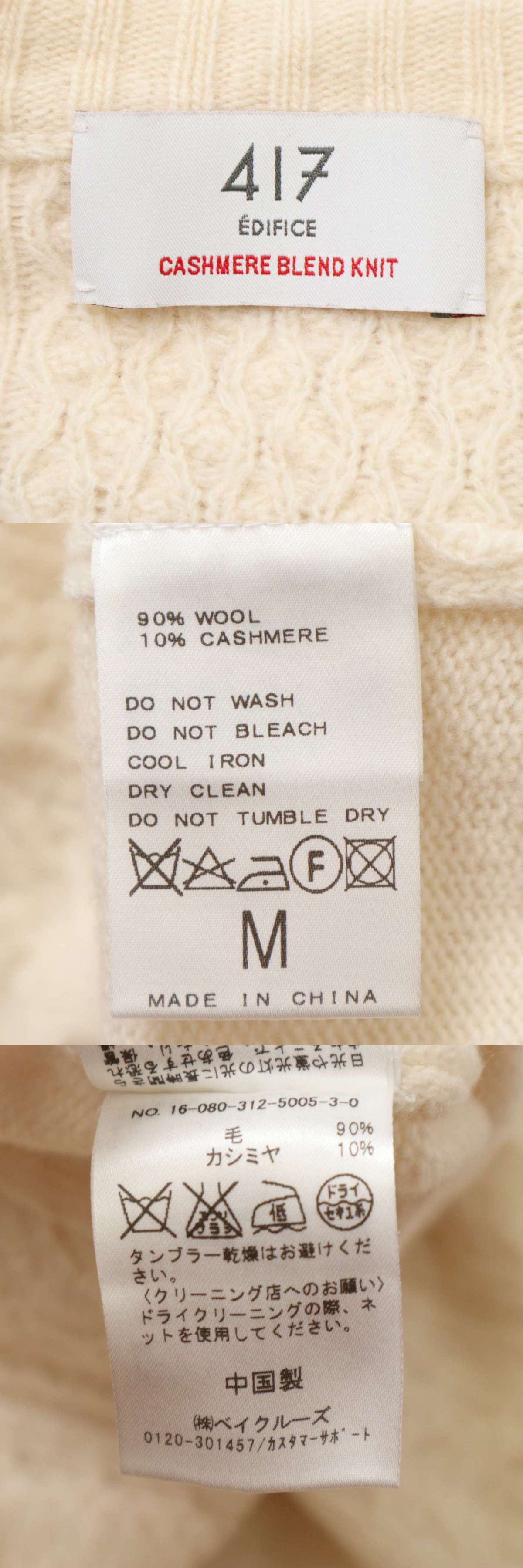 417 EDIFICE エディフィス 秋冬★ カシミヤ混 ウール アラン編み セーター ニット Sz.M メンズ 收藏