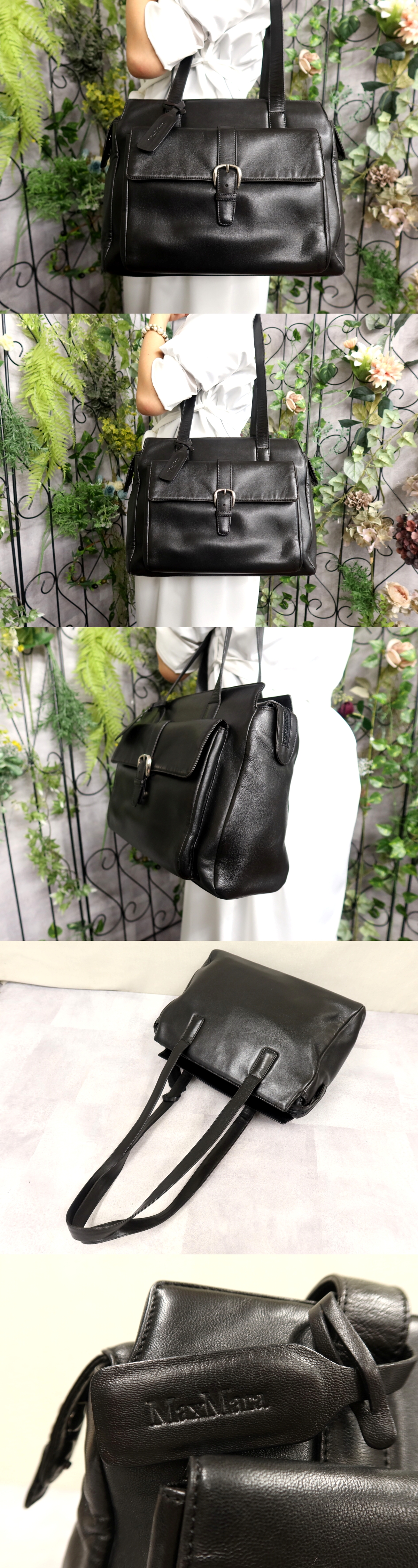 ●超美品●Max Mara マックスマーラ●ロゴ型押し●カーフ レザー●トート ショルダー バッグ●黒●シルバー金具●A4 収納 かばん●Js61178 收藏