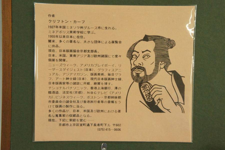 米国出身で日本に在住した版画家・クリフトン・カーフによる木版画です。