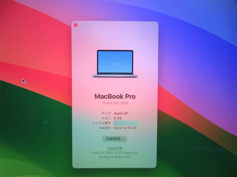 MacBook Pro A2338 ◆macOS Sonoma 14.7.8◆高速起動 Apple M1 (2020) / 8GB / PCI-e 256GB◆Office付◆13.3型 2K 收藏