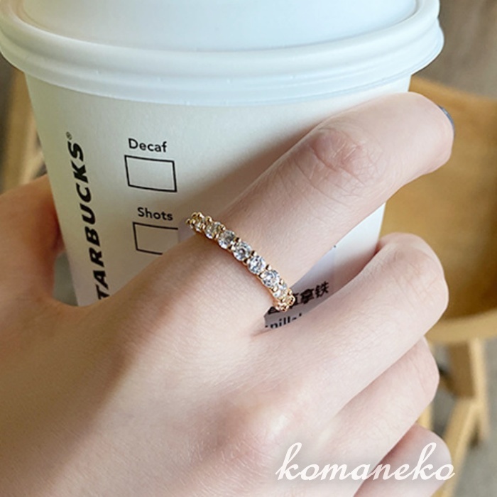 A671 指輪 レディース ジルコニア ゴールド フリーサイズ サイズ調節可能 ハーフエタニティリング 收藏