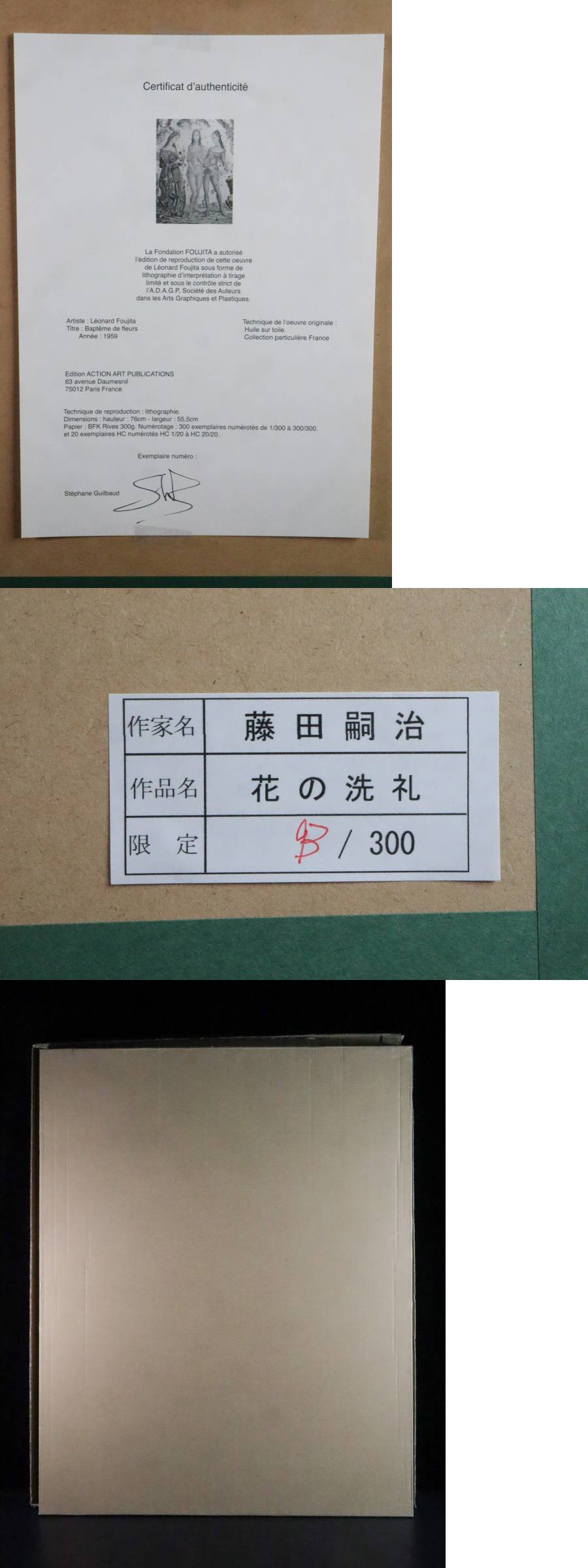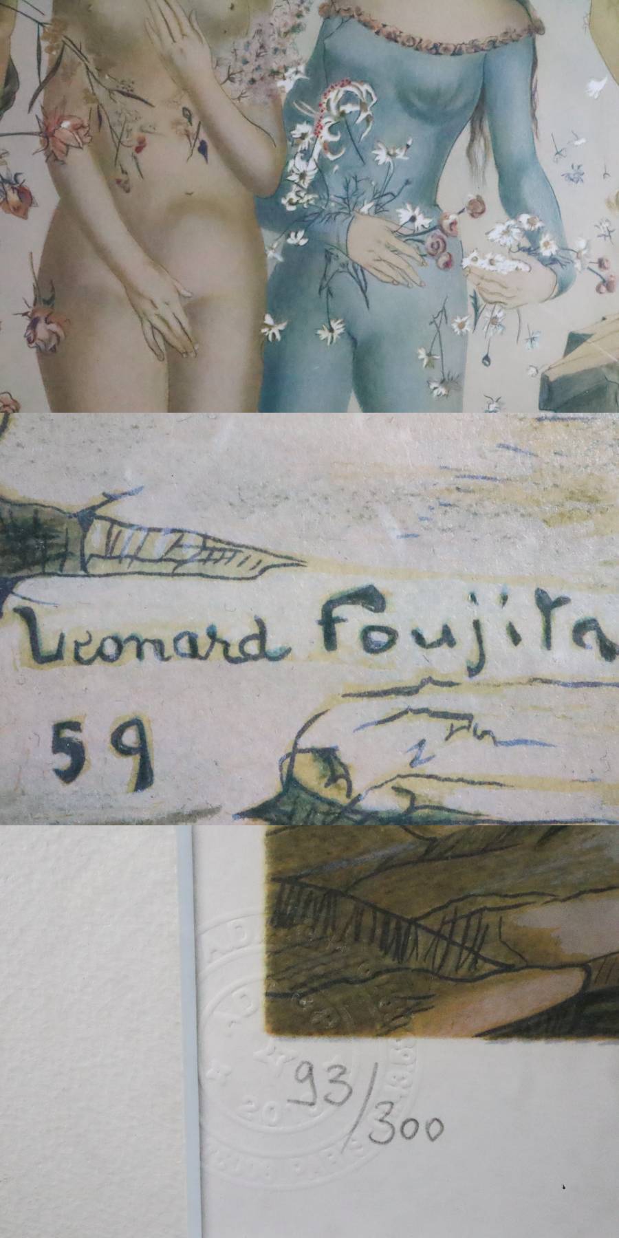 ◇雅◇ 真作 藤田嗣治 レオナール・フジタ 「三美神 花の洗礼」 リトグラフ 美人画 12号 エディション 93/300 サイン /RYO.25.10[B51.2]SV2 收藏