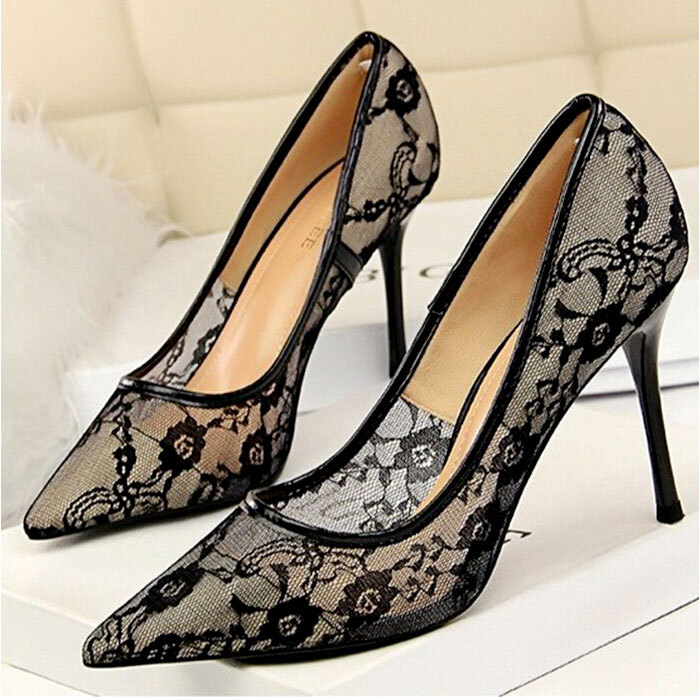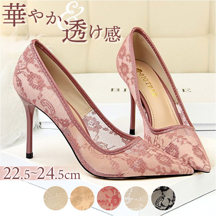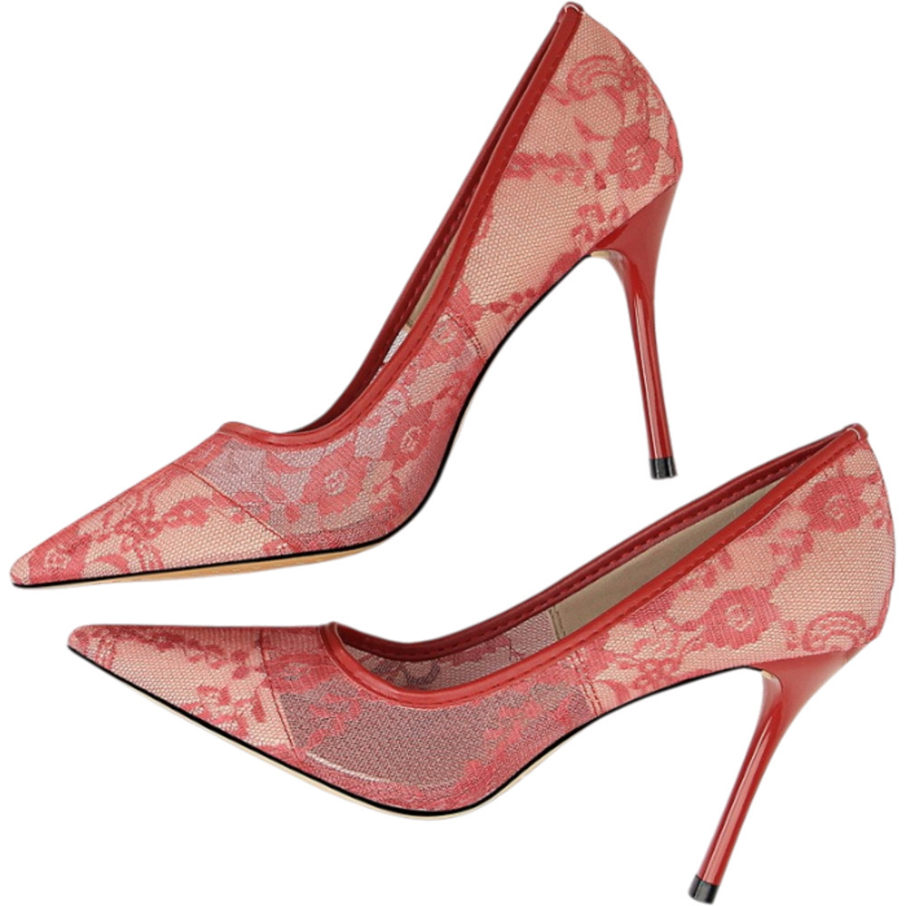 ☆ レッド ☆ 37(23.5cm) ☆ レース メッシュ パンプス レースパンプス パンプス ハイヒール メッシュパンプス パーティーパンプス 收藏