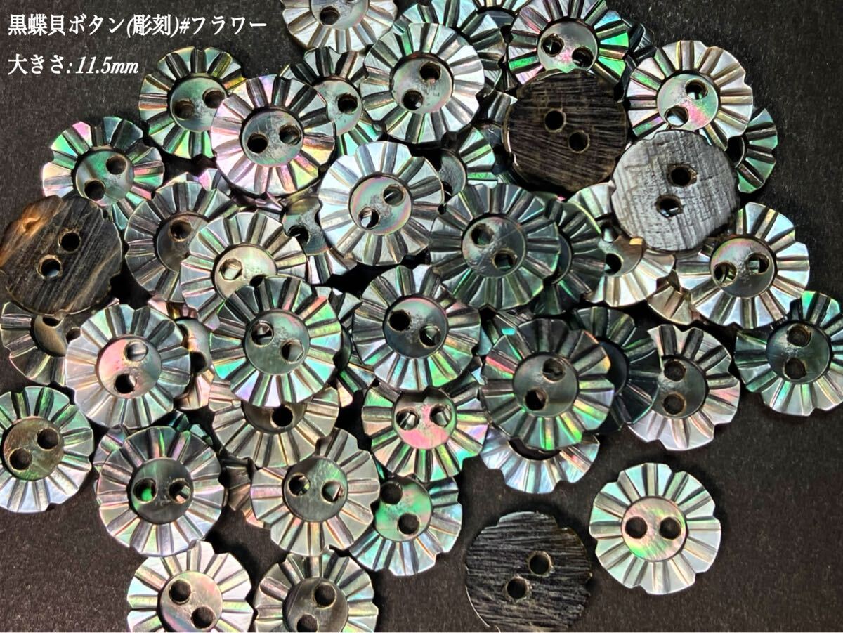 *送料無料*[2点以上でオマケ付]黒蝶貝ボタン(彫刻) 12フラワー 11.5mm 30個セット* 收藏