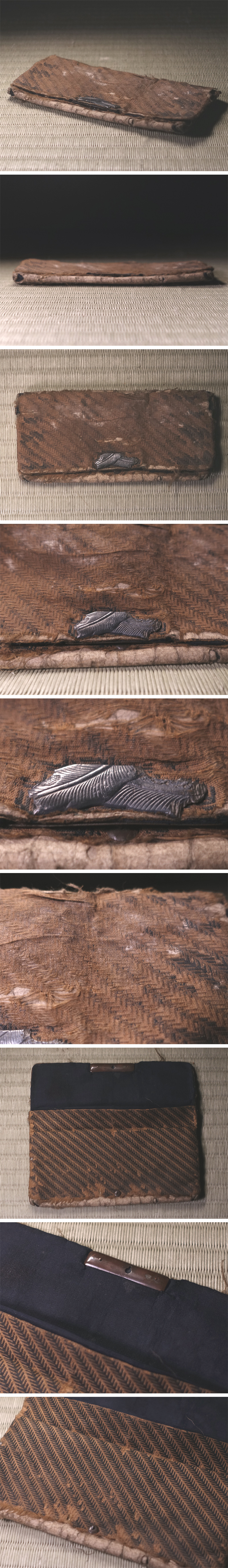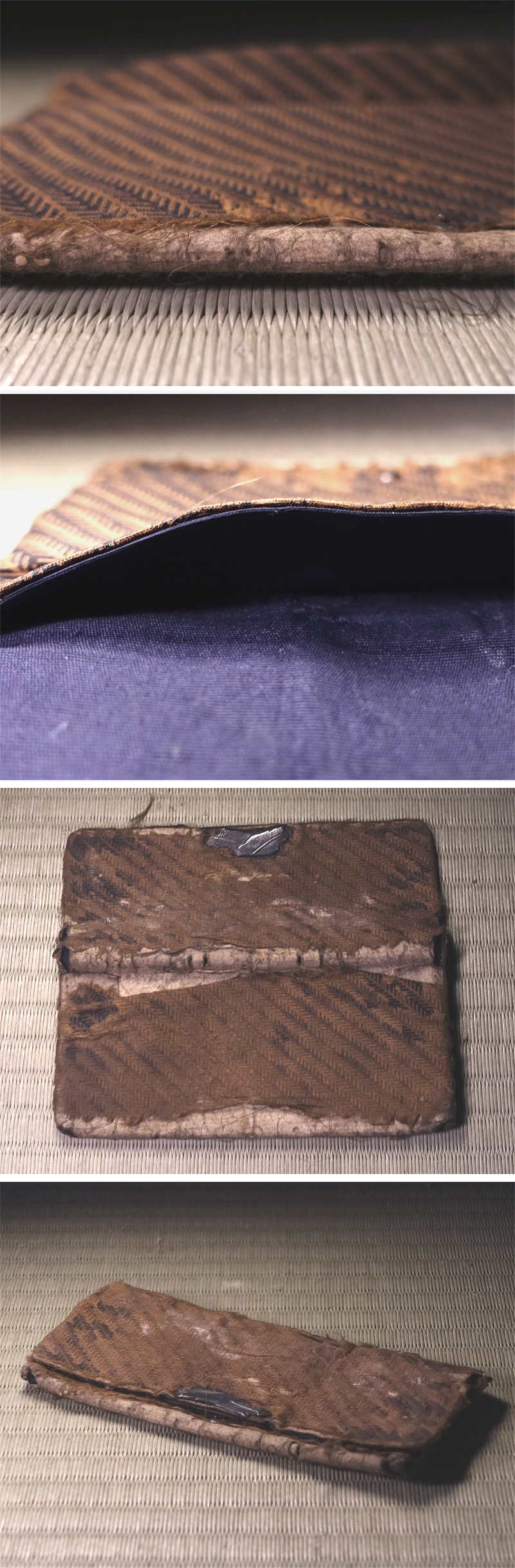 ∇花∇時代提げ物 絹本茶地羊歯文様紙入 銀地葉形前金具 道中財布 煙草入 鏡入 收藏