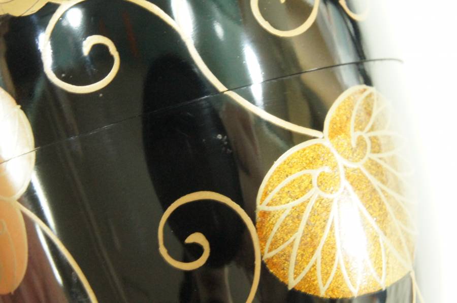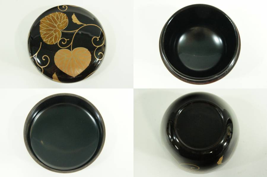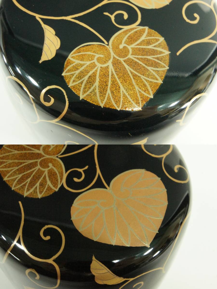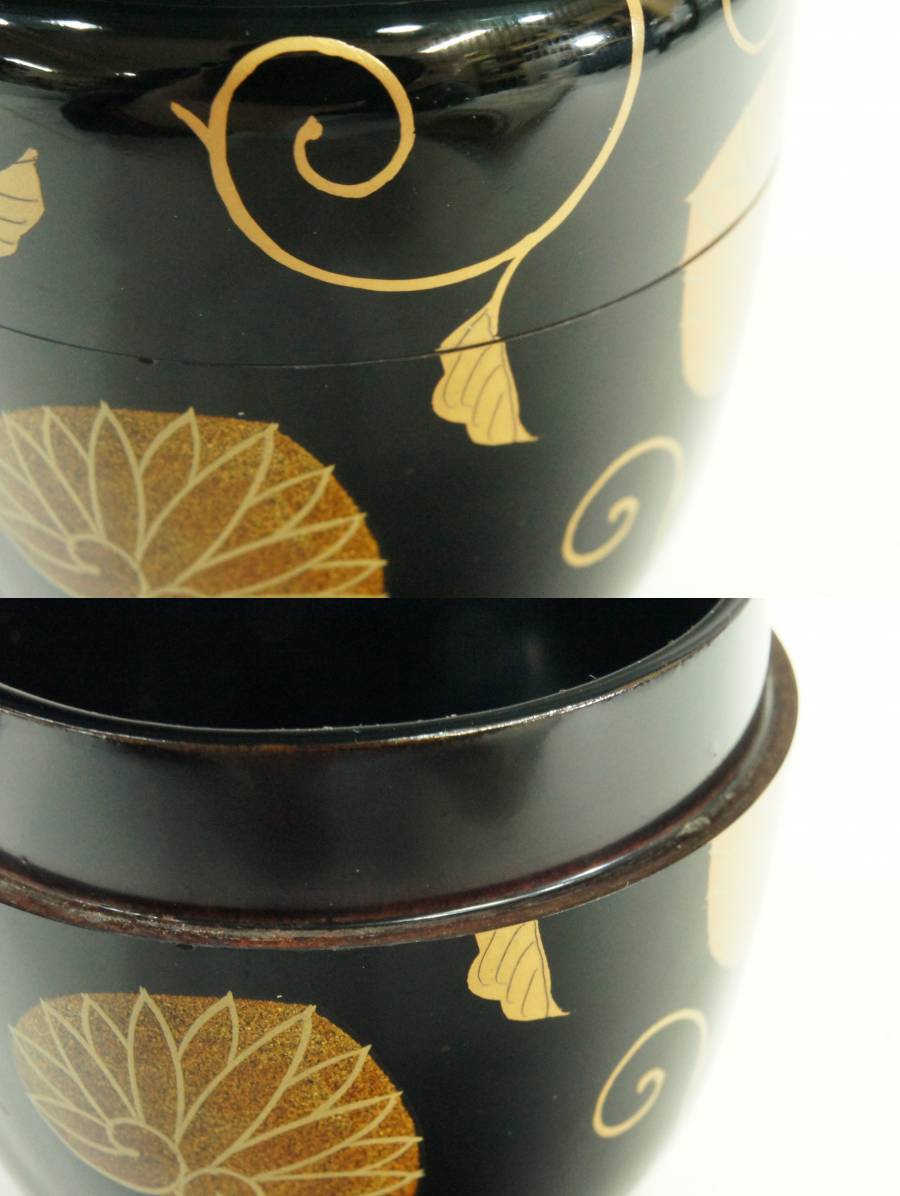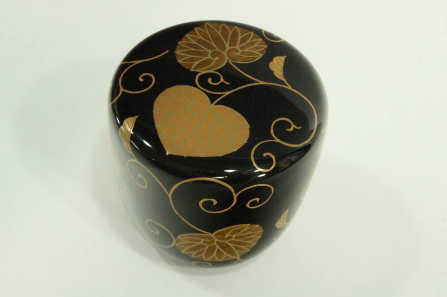 ●山中塗 多田桂寛 唐草蒔絵中棗 蔦草文 金彩 なつめ 共箱 傷や汚れ有 茶道具