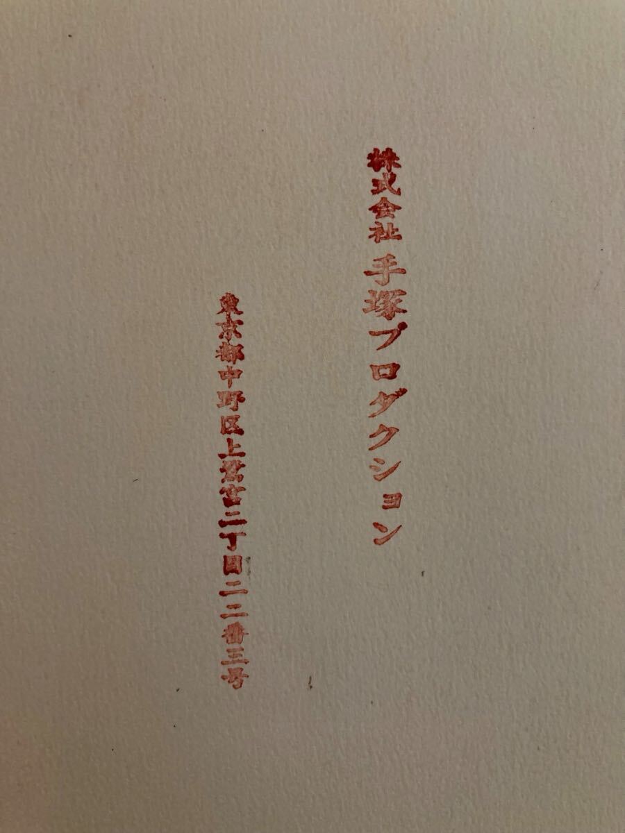 入手経路:手塚プロ関係者から譲り受けた貴重な一品となります。