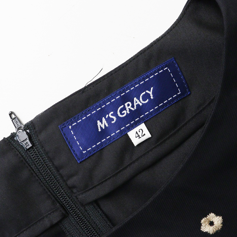 美品 大きいサイズ 2025SS エムズグレイシー MS GRACY 小花刺繍チュールワンピース 42┃ブラック タック フレア ドレス【2400014659139】 收藏