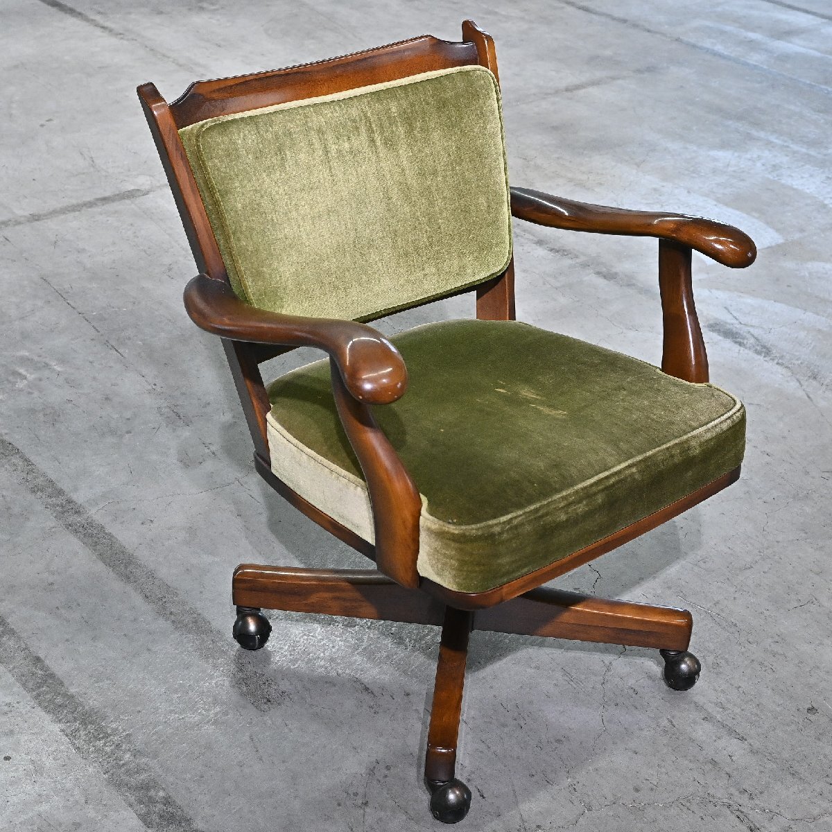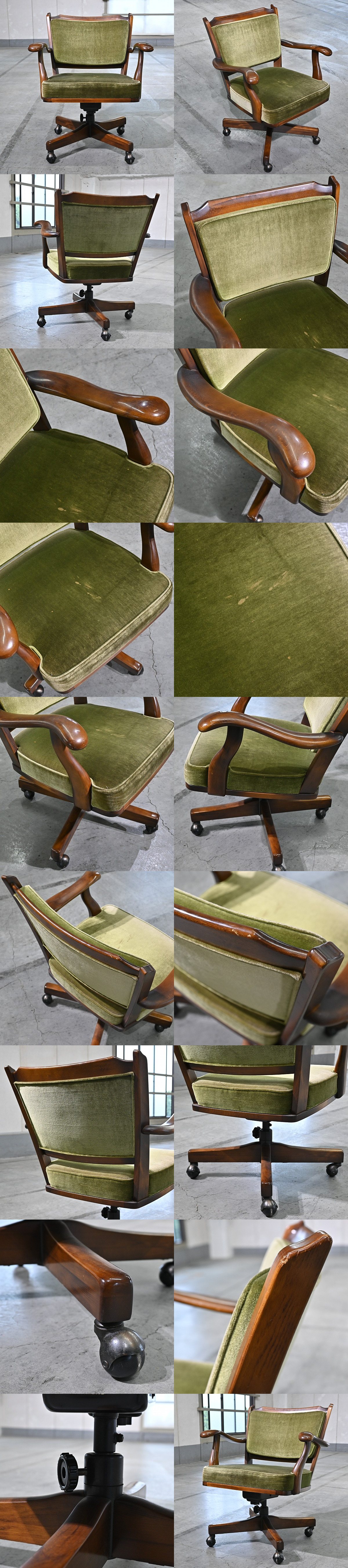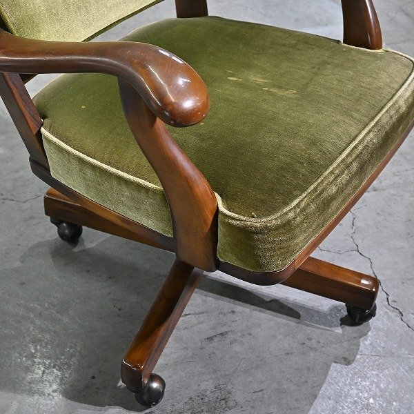 カリモク「コロニアル/COLONIAL」キャスターチェア B オーク無垢材 回転 モケットグリーン アーム リビング クラシカル デスク karimoku 收藏
