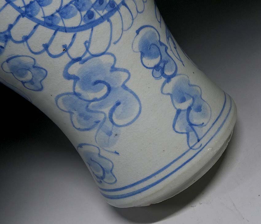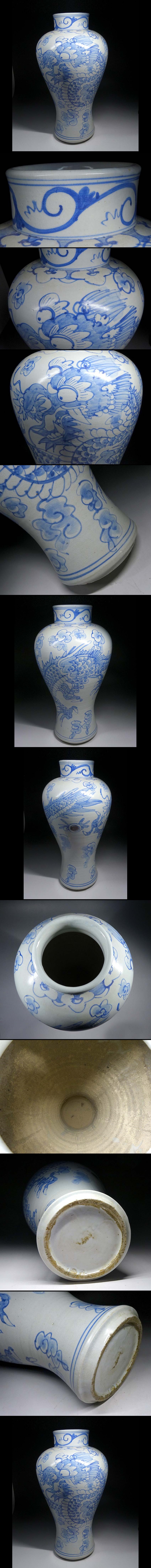 緑屋s■ 朝鮮美術 李朝 染付 雲龍紋壷 立壺 大花瓶 高約44cm 朝鮮古陶 時代物 i9/10-6325/25-3#120 收藏