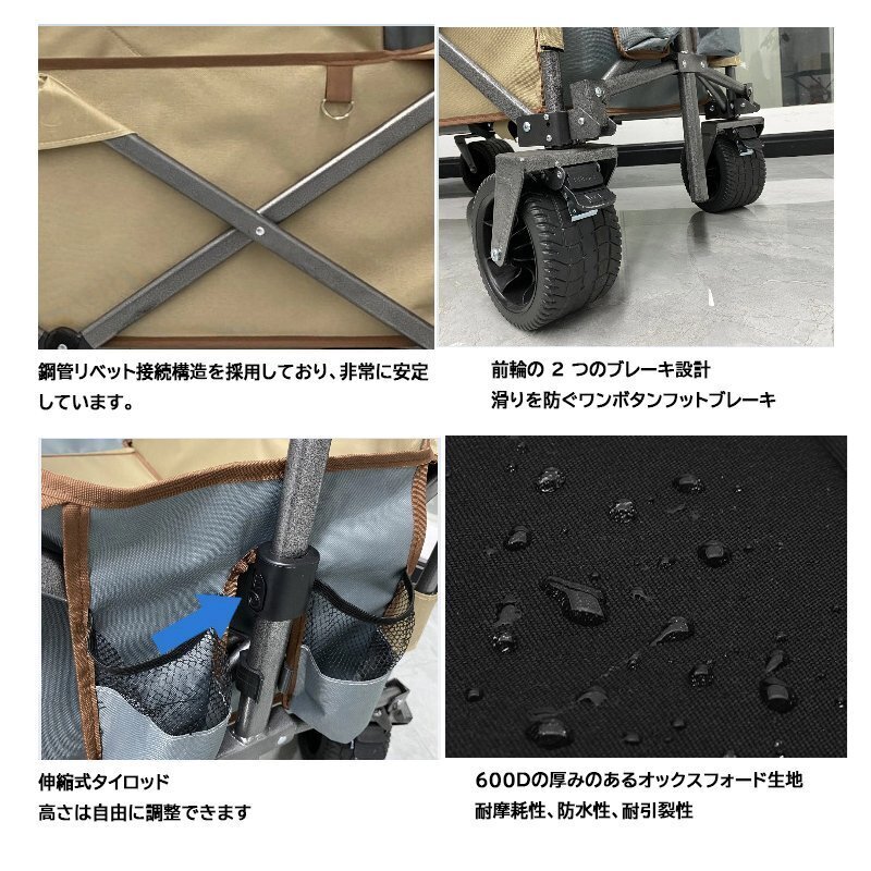 キャリーワゴン キャリーカート カバーテーブル付き ワイドタイヤ ブレーキ付き 高さを調整 荷重50kg 集合収納 (カーキ) 收藏