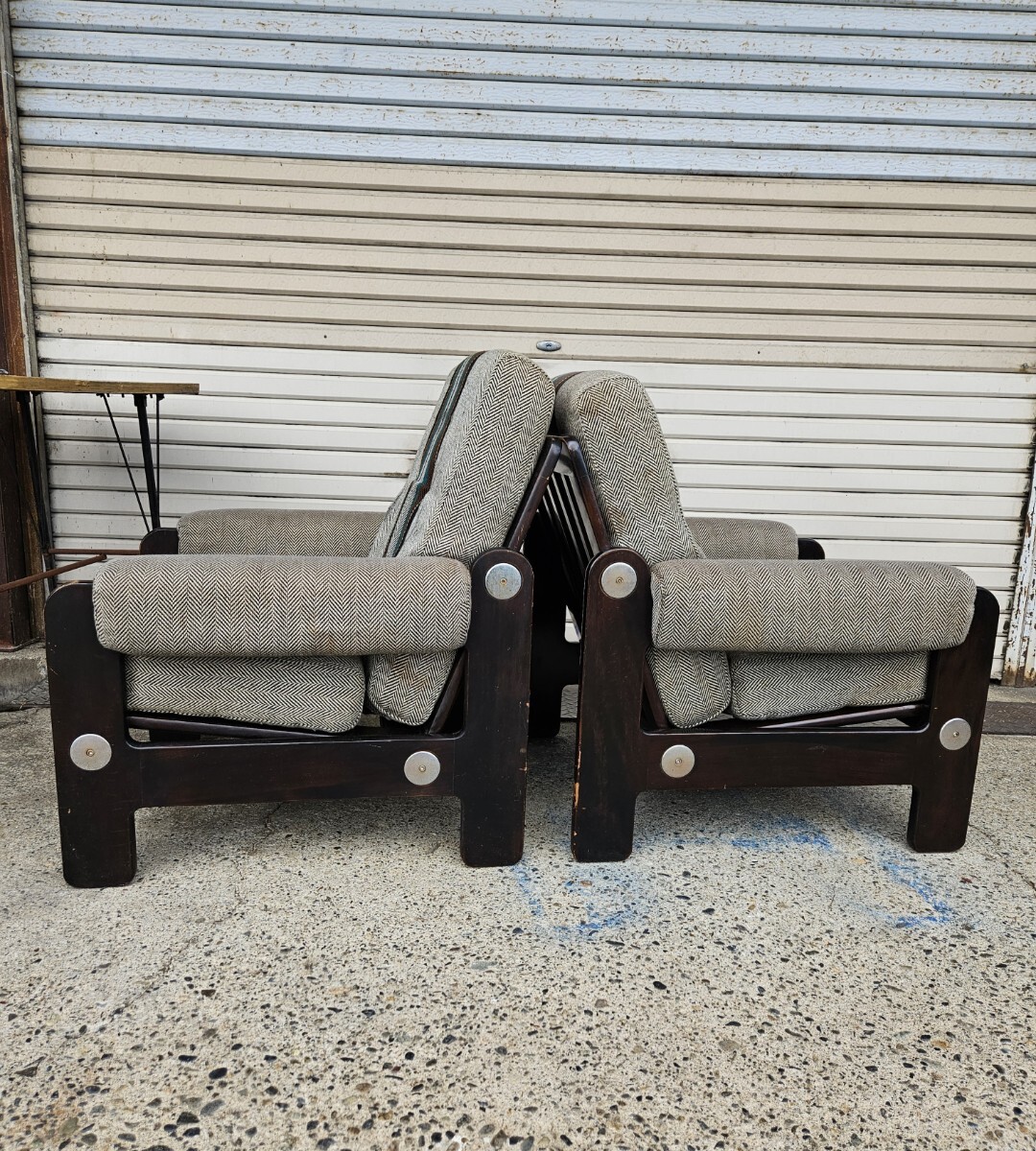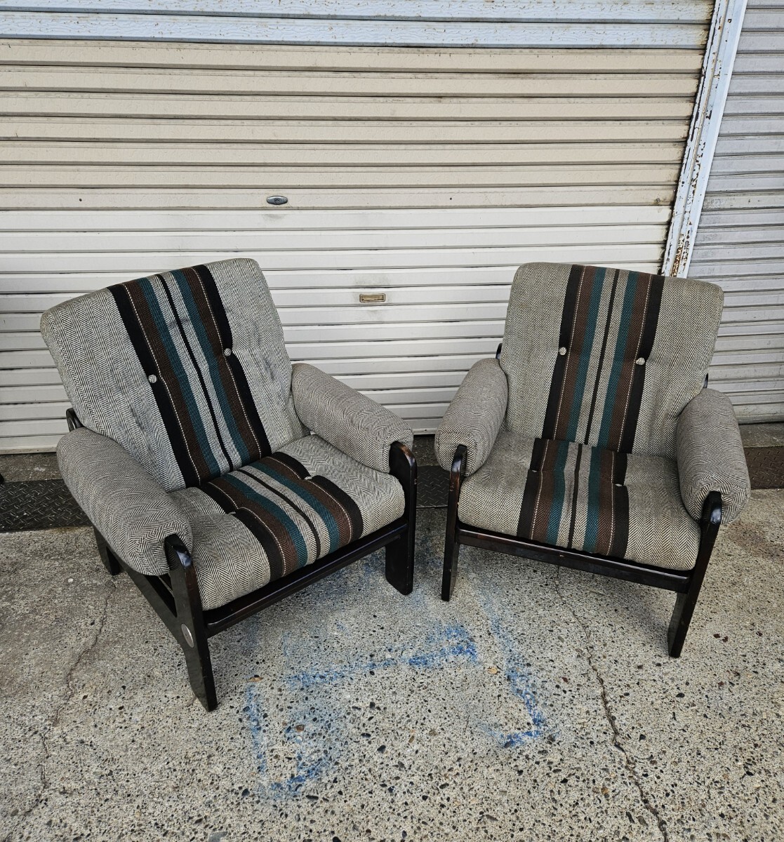 オールドカリモク Karimoku シングルソファ 2脚セット 椅子 アームチェア レトロ ヴィンテージ 古家具 ミッドセンチュリーモダン 綾織り 收藏