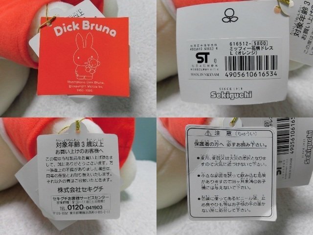 F007/コレクター放出/現状出品【ミッフィー miffy ぬいぐるみ オレンジ花柄ワンピース 全高(約)50cm セキグチ 計1点】 收藏