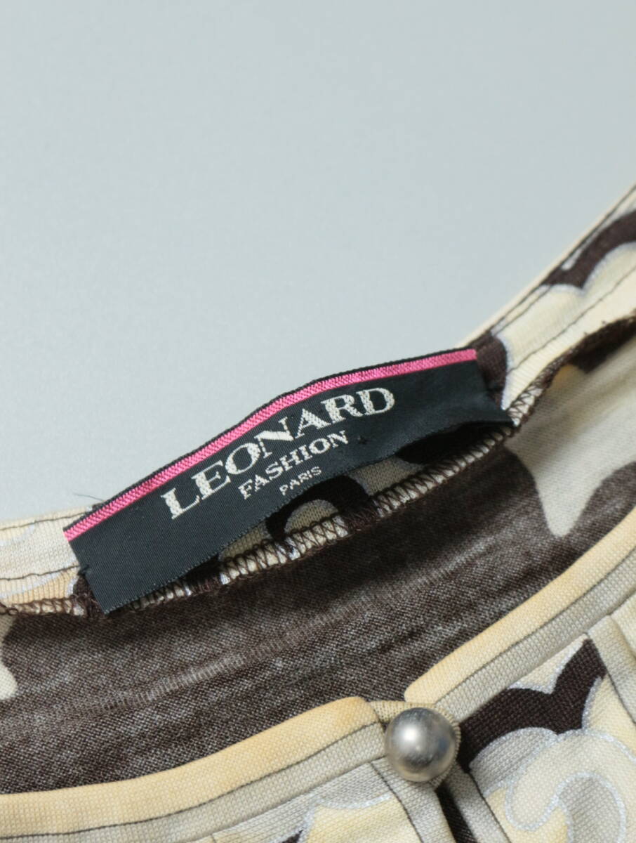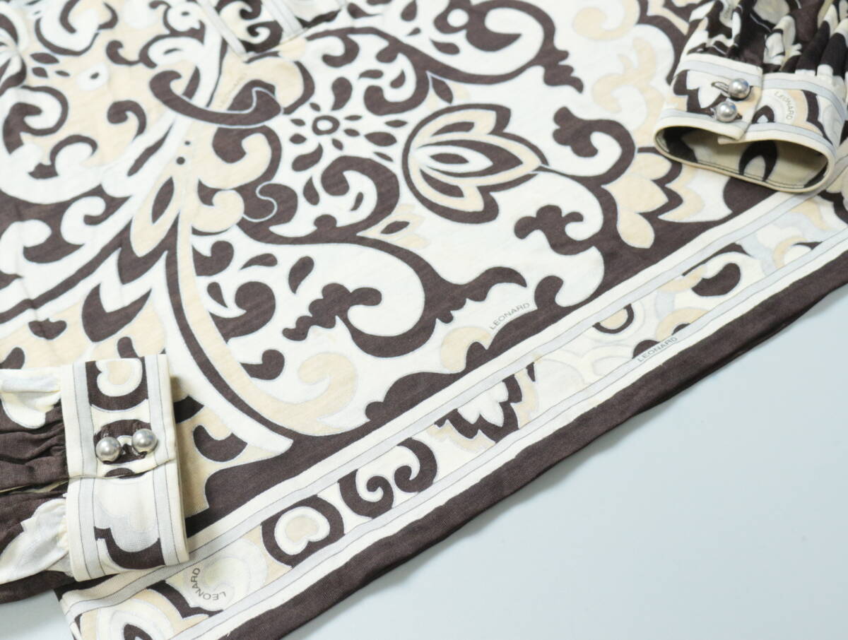 C65/LEONARD/レオナール/日本製/ウール×シルク/カットソー/トップス/総柄/長袖トップス/ブラウン/Lサイズ 收藏