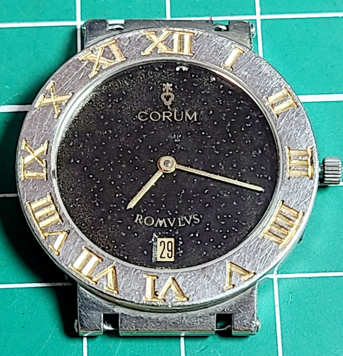 CORUM コルム ロムルス メンズ V048 黒文字盤 不動 リューズ操作不良 バックル付き ジャンク品. 收藏