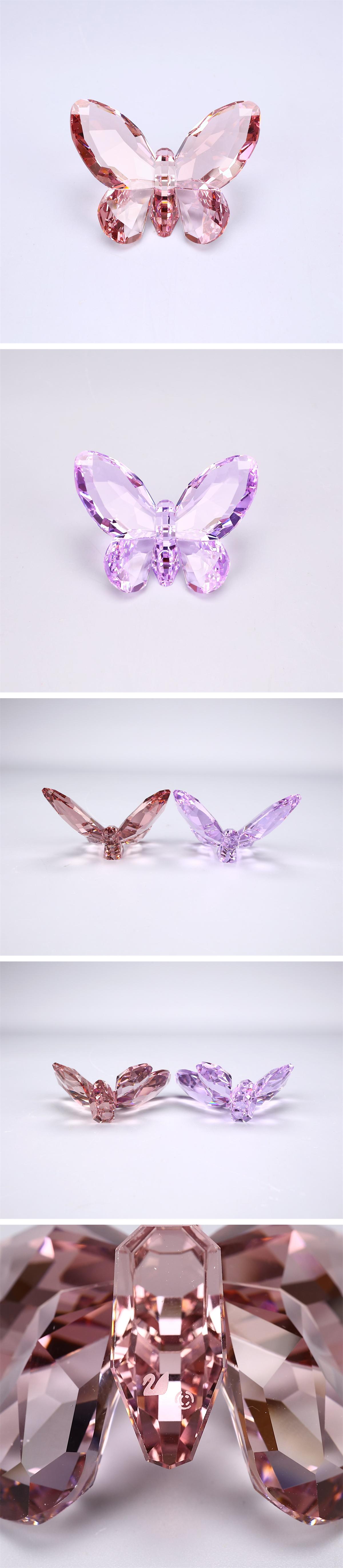 【吉】PC778 SWAROVSKI 【スワロフスキー】 クリスタルガラス 紫蝶 置物 2点 一対/共箱付 美品! 收藏