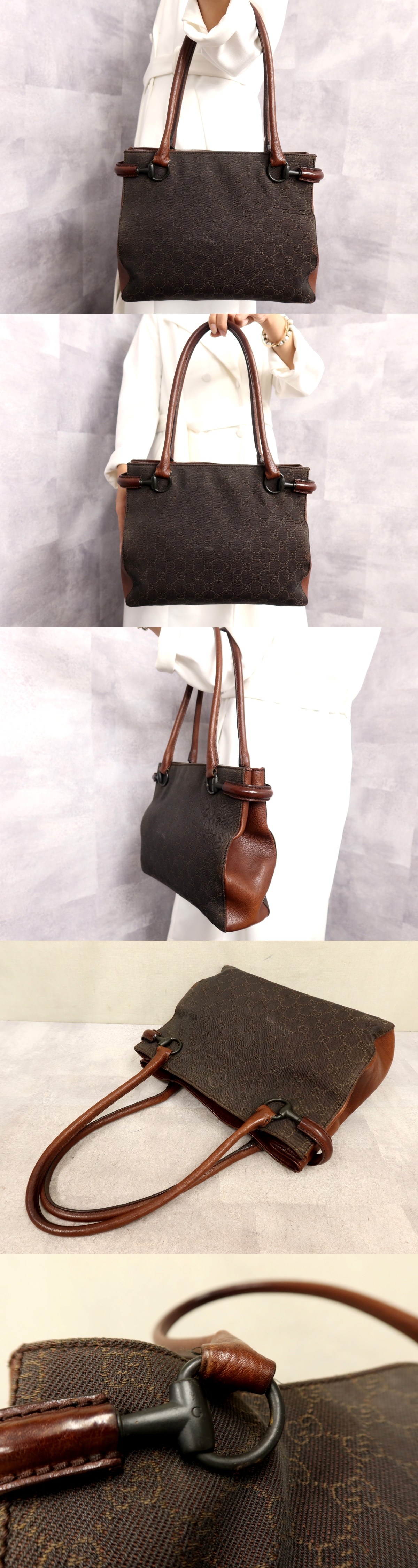 ●美品●GUCCI グッチ●GGデニム カーフ レザー 本革●トート バッグ●ダークブラウン●イタリア製●腕掛け●B5 書類 収納 かばん●Js62130 收藏
