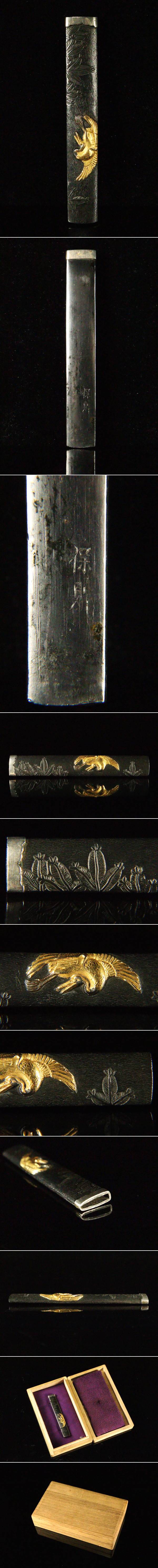 【ASAHI】上々作 鑑定書付き 時代武具 水戸金工【額川保則】赤銅石目地金象嵌鶴図小柄 小道具 刀剣刀装具[710243rt] 收藏