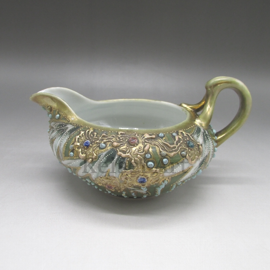 オールドノリタケ 緑地先尖葉文クリーマー 【1891-1915年頃 メープルリーフ印】【状態:良好】 收藏