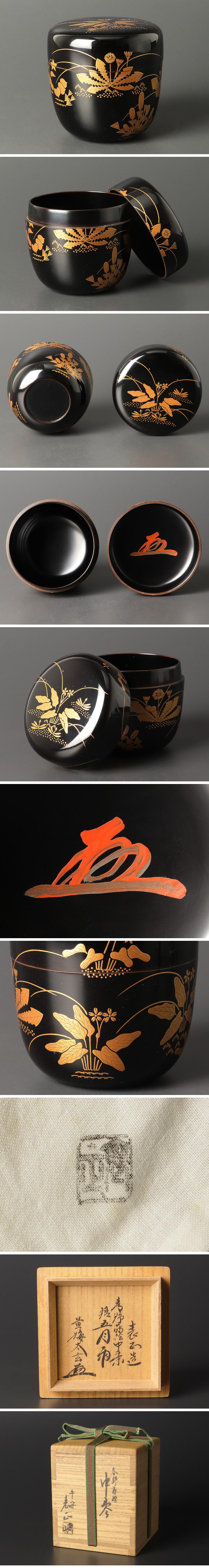| 【古美味】平安 伊藤表正『小林太玄書付』春野蒔絵 中棗 茶道具 保証品 |