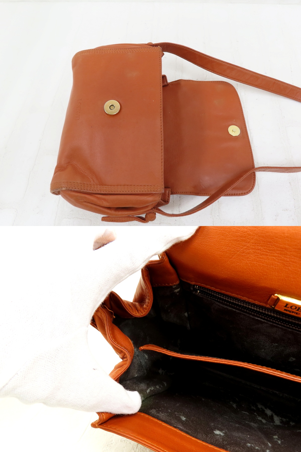 ◆美品◆LOEWE ロエベ◆カーフ レザー 本革◆ショルダー バッグ◆ブラウン ゴールド金具◆ロゴ型押し◆フラップ◆斜め掛け◆A14194 收藏