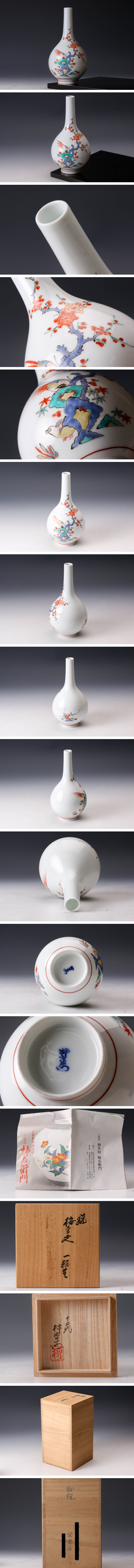 【佳香】人間国宝 十四代 酒井田柿右衛門 錦梅鳥文一輪生 共箱 栞 本物保証 收藏