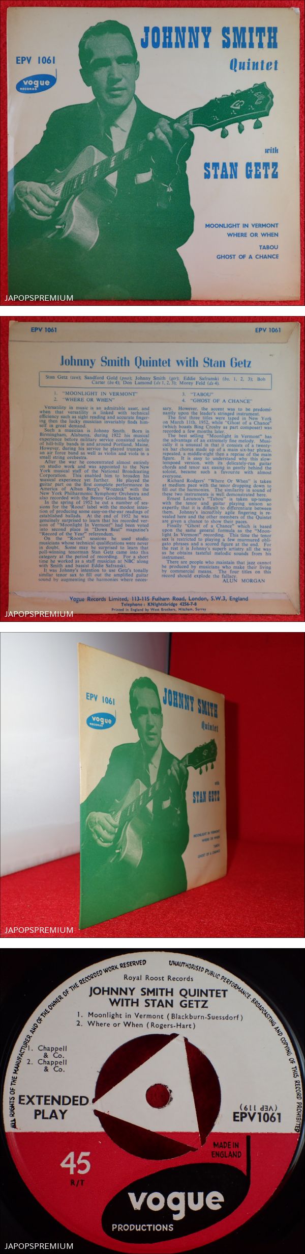 VIP放出★送料無料★神洗浄【宇宙級レア★幻の英7インチEP★極美品★UK完オリ★VOGUE】★JOHNNY SMITH QUINTET with STAN GETZ★歴史的名演 收藏
