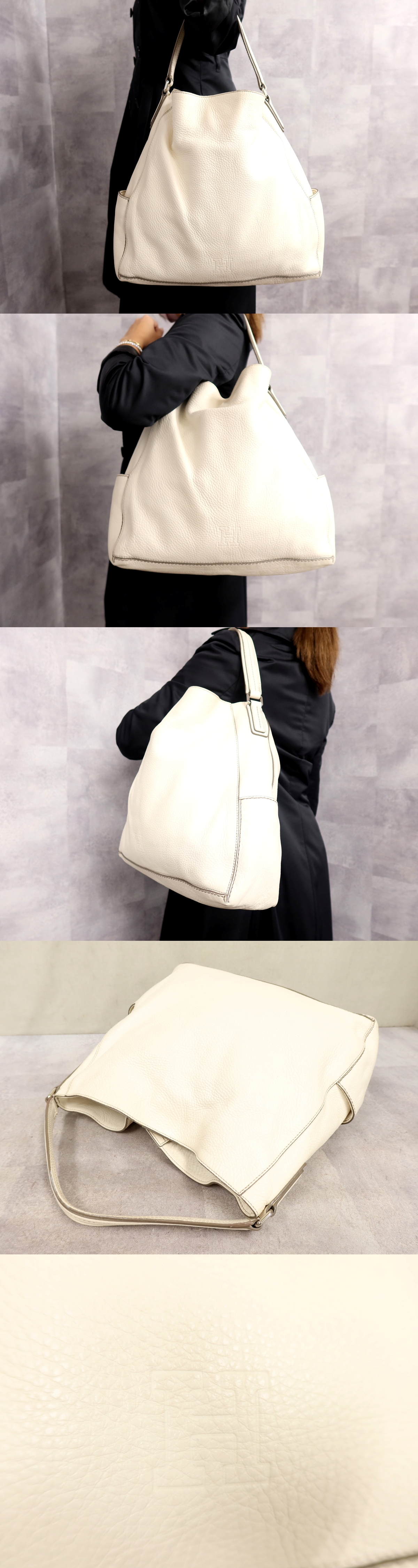 ●超美品●HIROFU ヒロフ●ロゴ型押し●カーフ レザー 本革●ハンド バッグ●アイボリー●シルバー金具●肩掛け●A4 収納 かばん●Js63033 收藏