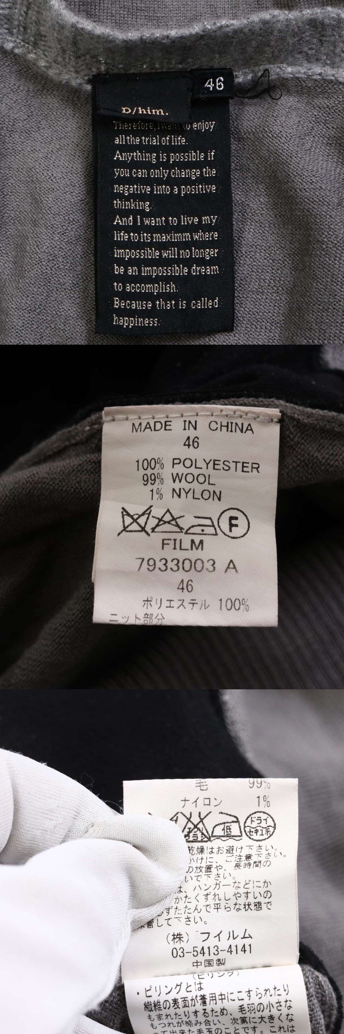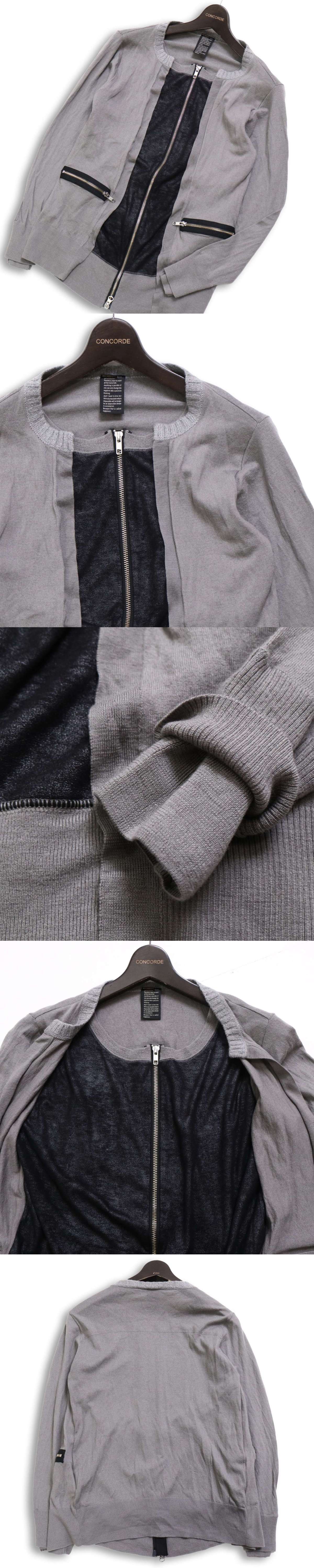 D/him. ダブルスタンダード クロージング 秋冬 ウール★ レイヤード風 ニット ジップ ブルゾン ジャケット Sz.46 メンズ 灰 收藏