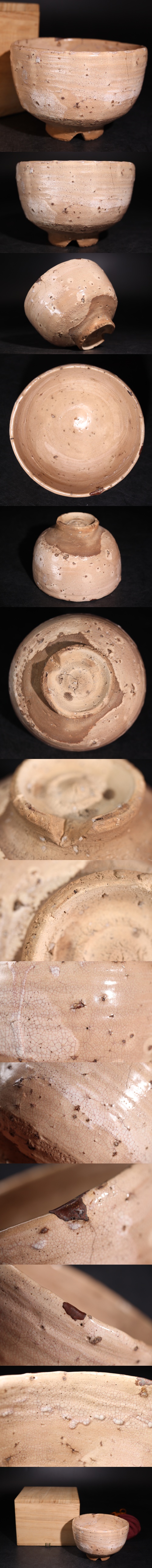 | 時代 古萩 茶碗 金継ぎ 仕覆 木箱付 / 萩焼 茶器 煎茶道具 煎茶飾 .G3376 |