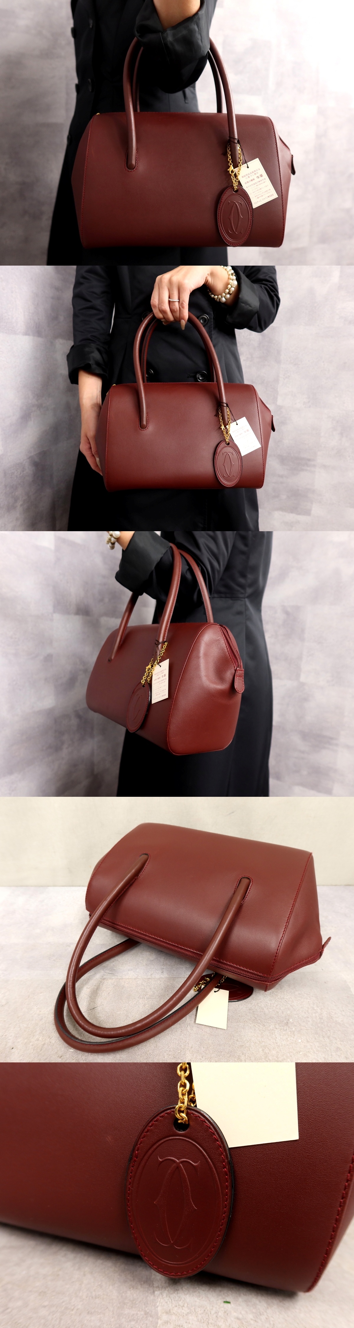 ●超美品●Cartier カルティエ●マスト●カーフ レザー 本革●ハンド バッグ●ボルドー●ゴールド金具●腕掛け●収納 かばん●Js63594 收藏