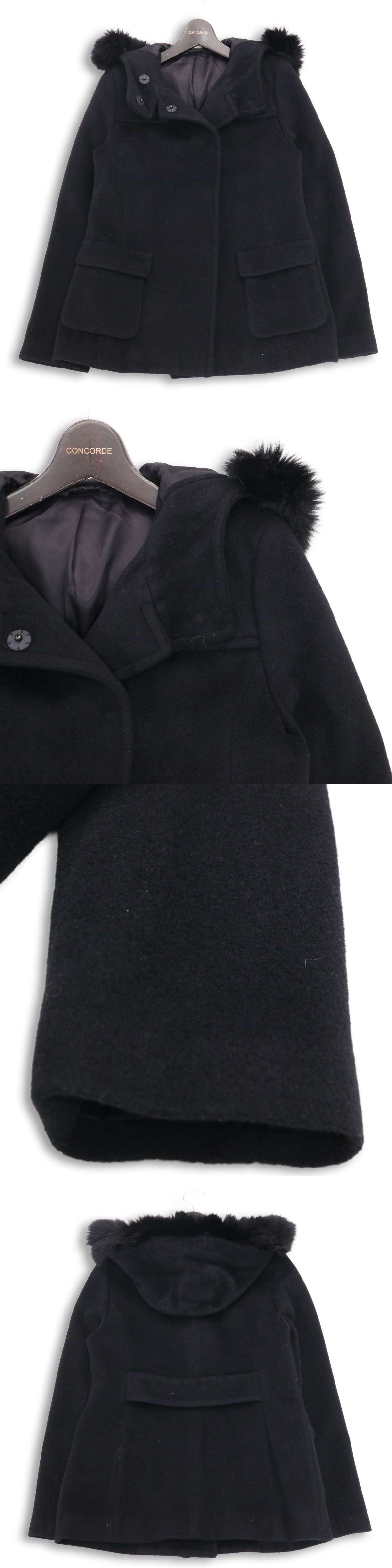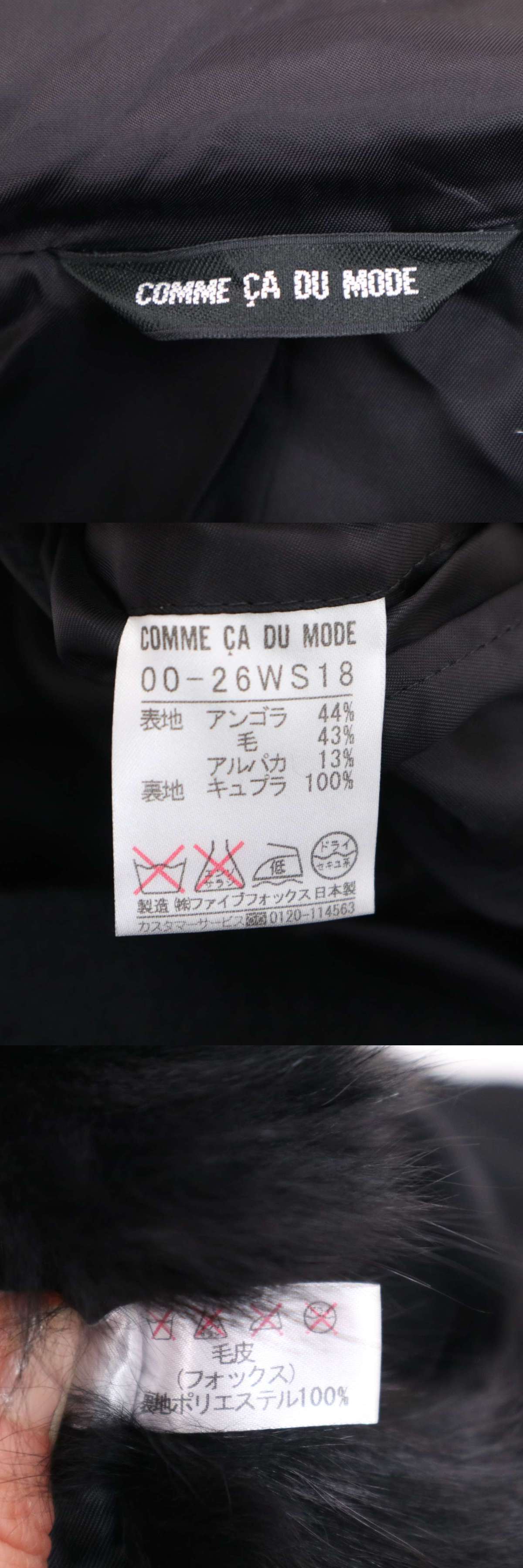 COMME CA DU MODE コムサ デ モード 秋冬 リアル ファー着脱可★ アンゴラ アルパカ フーディー コート Sz.F レディース 黒 收藏