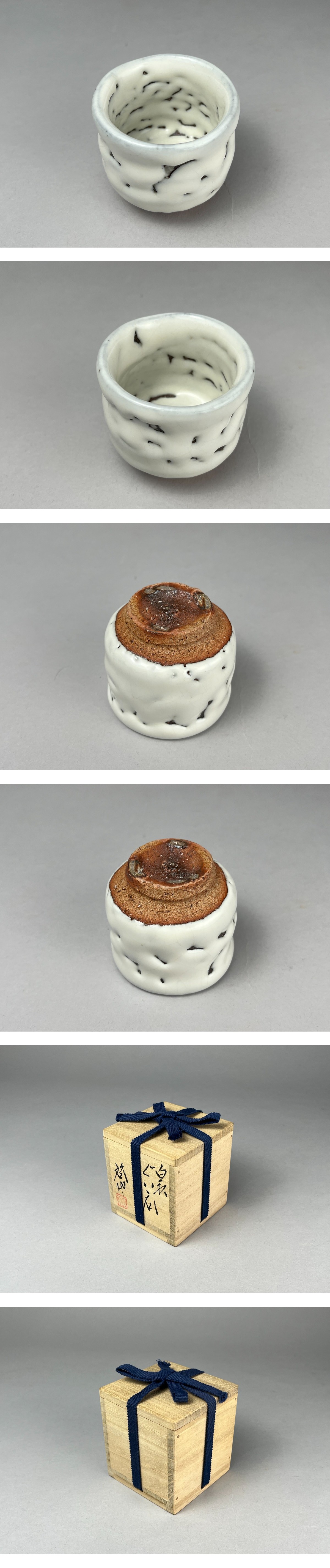 A961 萩焼 煌雪窯 清水啓功 白萩 ぐい呑み 共箱◇山口県 酒器 猪口 民芸 和食器 伝統工芸 骨董 古美術 コレクション 收藏
