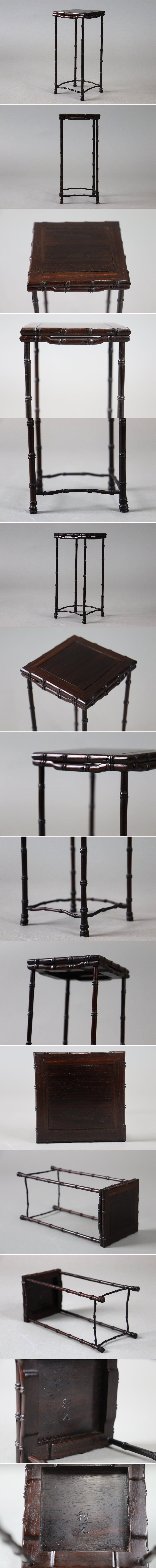 盆栽道具 利光作 唐木 紫檀 竹彫 懸崖 高卓 花台 飾台 香炉台 盆栽台 細密細工 古美術品[e135] 收藏