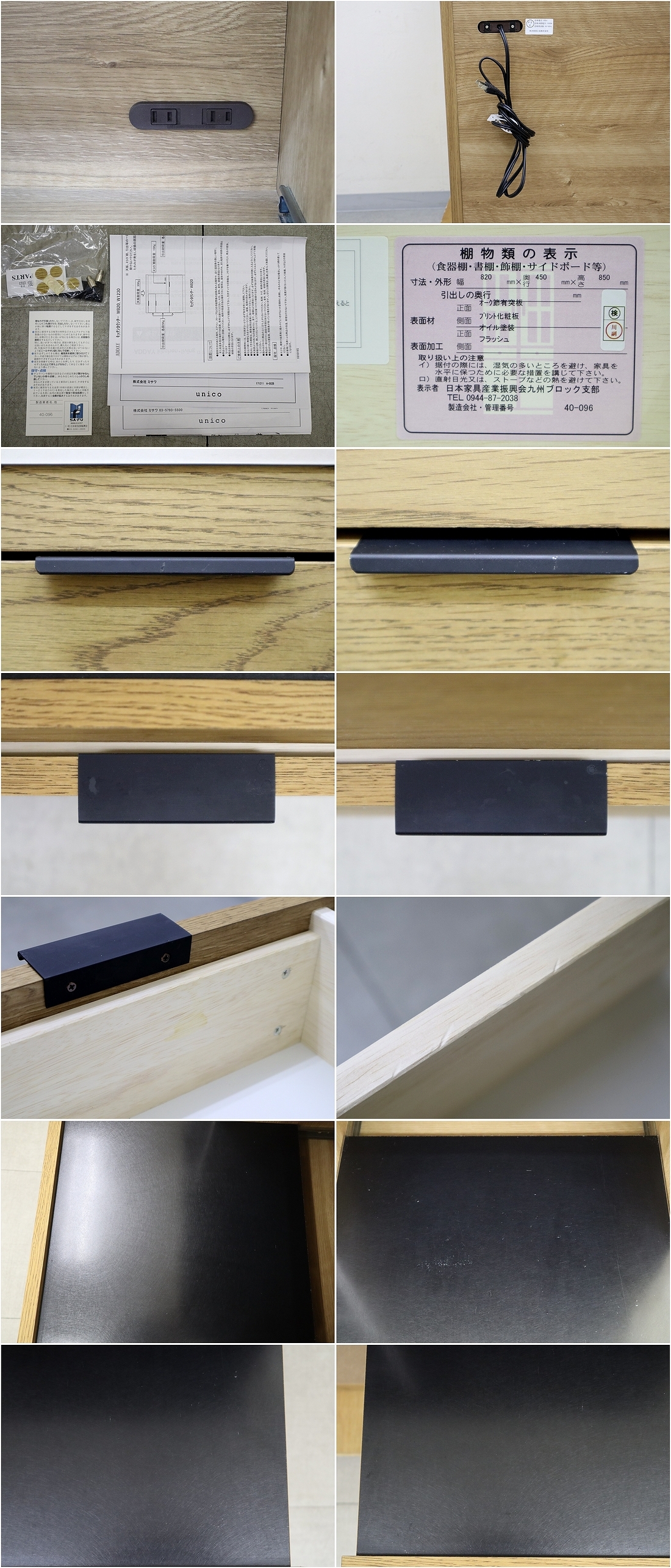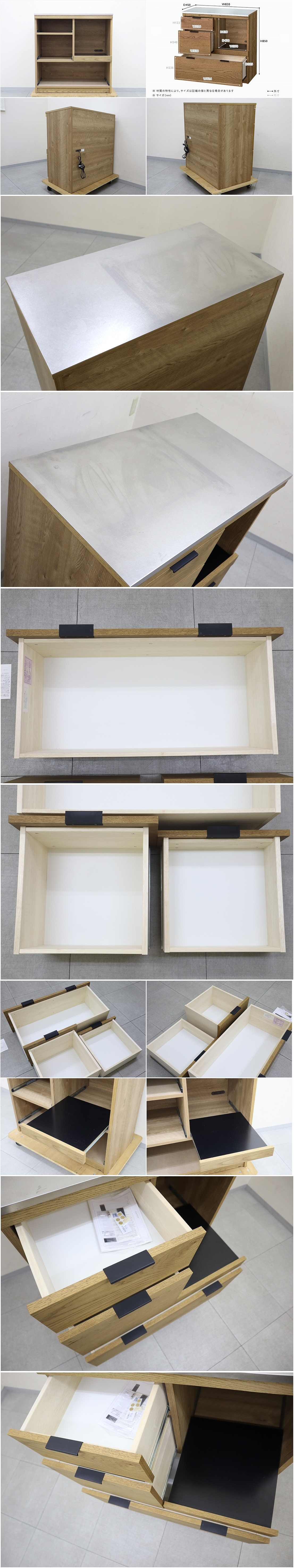 美品◆unico ウニコ ADDAY アディ キッチンカウンター ステンレス天板 木製 キッチン台 レンジボード キッチン家具 W820 定価10万 收藏