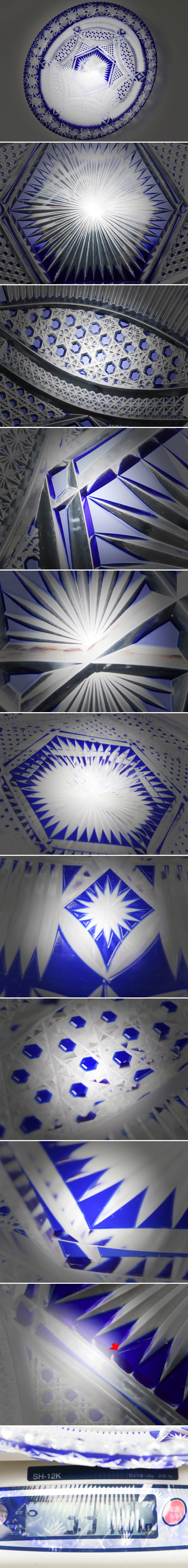 0Amj ボヘミア Bohemian Glass コバルト 六角サンバースト 8ポイントスター 特大飾皿 43cm|ボヘミアンクリスタル 收藏