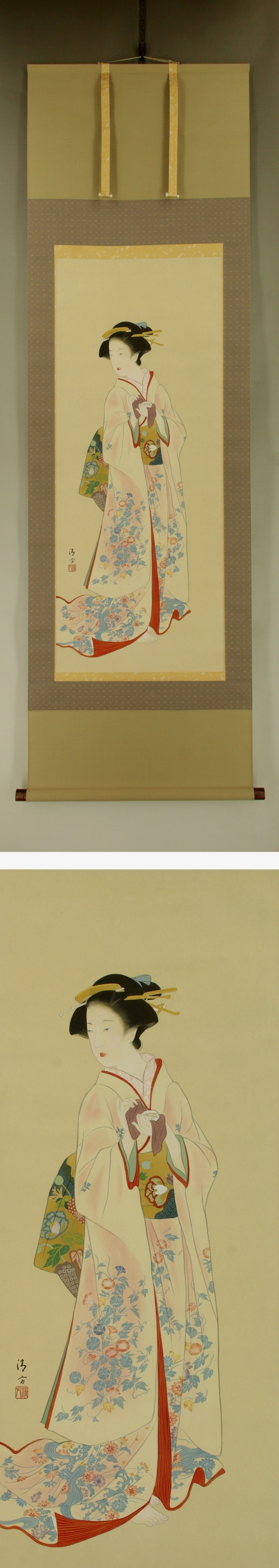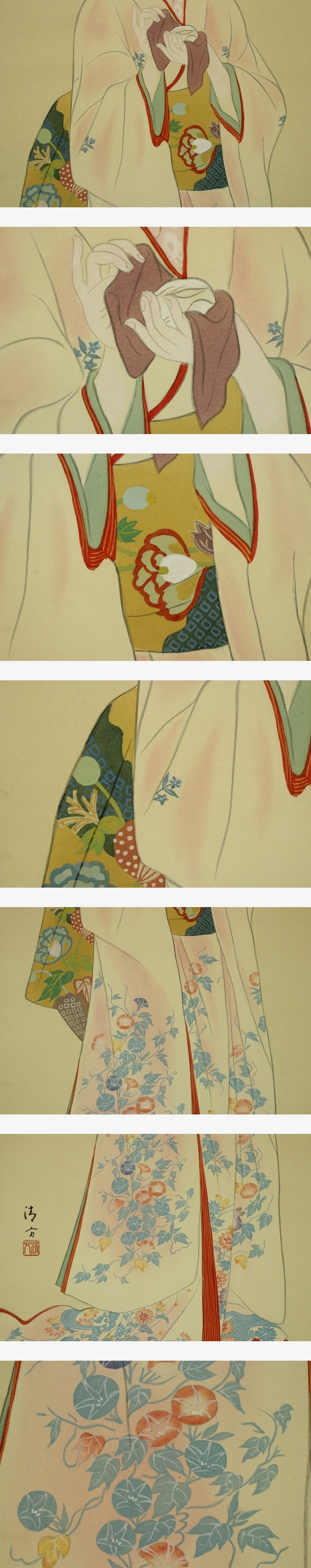 | №2512035【模写】鏑木清方【朝顔美人】◆絹本◆合箱◆掛軸 | |