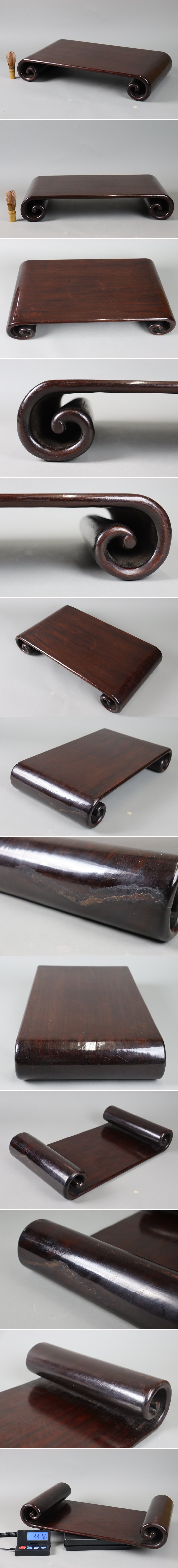 時代 唐木 大型 巻足花台 幅55cm 重4,4kg 無垢材 紫檀黄花梨 香炉台 飾台 細密細工 古美術品[e266] 收藏
