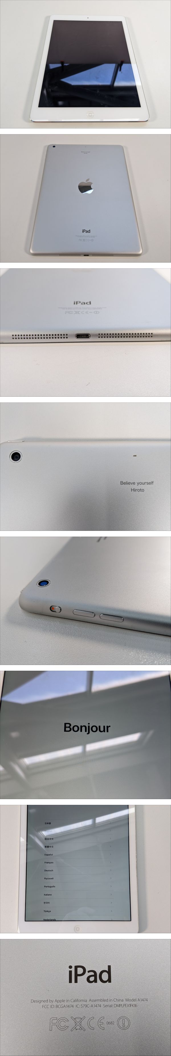 | 商品説明 | ★最後までお読みいただき、ご理解の上でのご入札をよろしくお願いいたします。 【GL003】 【動作OK】Apple アップル A1474 Wi-Fiモデル 64GB iPad Air タブレット 本体のみ 【動作状況】 こちらは、Aになります。 A:動作確認OK(全ての機能が問題なく使用できるか保証できません) B:通電のみ確認(動作確認は行っていない為ジャンク品の可能性含む) C:動作未確認品(ジャンク品の可能性含む) D:不動品、ジャンク品 ※動作未確認の商品は保証出来ません。 【商品状態】 基本的に中古品の為、スレや傷・汚れなどございます。 多数商品がある場合、傷や汚れを写真に載せきれない可能性もございます。 あらかじめご理解・ご了承の上入札をお願いいたします。 また、細かくクリーニングしている訳ではありませんので 状態を極度に気にされる方、神経質な方は入札をお控えください。 ■写真に写るもののみの販売となります。 写真にないものは付属いたしません。 画像をご確認の上、商品の状態に納得して頂いた方のみ入札をお願いいたします。 【サイズ】 W約16.5×H約24×D約0.5cm ※素人採寸のため多少の誤差はご容赦ください。 【取引ナビの対応日時】 ■平日9:00-18:00となります。※土日祝日は休業 【発送方法】 発送は佐川急便よりお送りいたします。 原則ご入金後、発送まで3日~7日お時間を頂いております。落札商品の量によって発送までのお時間が前後してしまう可能性があります。商品をお急ぎの方はご注意ください。 ※発送元地域が異なる商品の同梱はできません。 また土日祝日はの取引全般をお休みしておりますので発送/連絡はできません。いつ頃発送するのか等の催促はおやめください。 ※沖縄・離島の方は【中継料】が発生し送料が高額になります為、佐川着払いとなります。 ※中継料が発生した場合、追加で中継料分の不足送料を請求させて頂きます。必ずご自身のお住まいをご確認頂いてから入金をお願い致します。 【直接引き取り】 引き取り場所は群馬県前橋市になります。 詳しいご案内場所は落札後、取引ナビにてご連絡いたします。 受付時間:平日9-18時 ■手順 ① 取引情報の入力 ② yahoo!かんたん決済で支払うをクリック ③ 配送方法を直接引き取り0円を選択し決済を行ってください。 ④ 取引メッセージに 直接引き取り希望と、希望日、希望時間帯をお知らせください。 後程、ご案内の通知をいたします。 【注意事項】 ■発送連絡と同時に評価も入れております。評価不要の方はご落札時にメッセージでお知らせください。 ■商品到着後、破損があった場合は配送業者へ一度ご連絡をお願い致します。 ■発送方法の変更はお受けできません、また送料に納得がいかないままの入札はご遠慮ください。 ■商品到着後7日以上経ってからの返品・返金は対応出来ません。品物が到着次第すぐに商品の状態をご確認ください。 ★他にも沢山の商品を出品しております。 ご興味のある方は、他の商品も是非ご覧下さい。