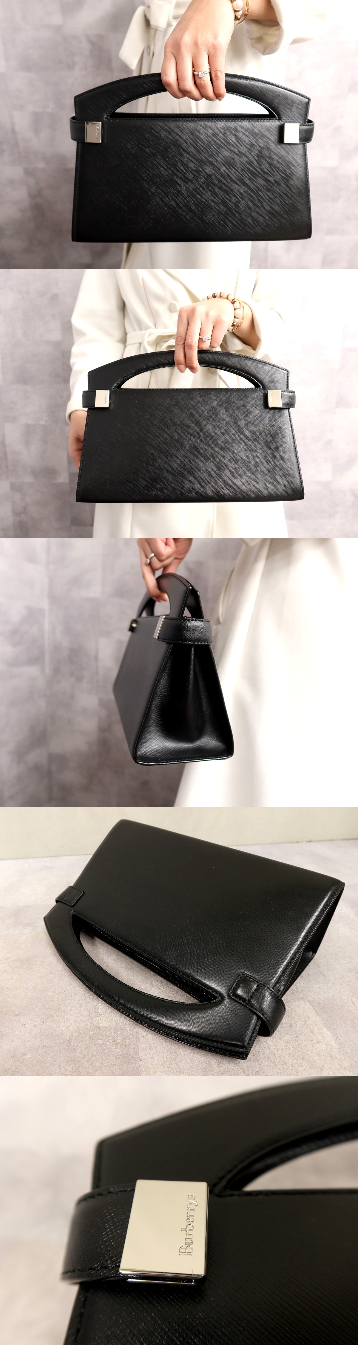 ●超美品●BURBERRY バーバリー●サフィアーノ レザー 本革●ハンド バッグ●黒●シルバー金具●収納 かばん●Js66320 收藏