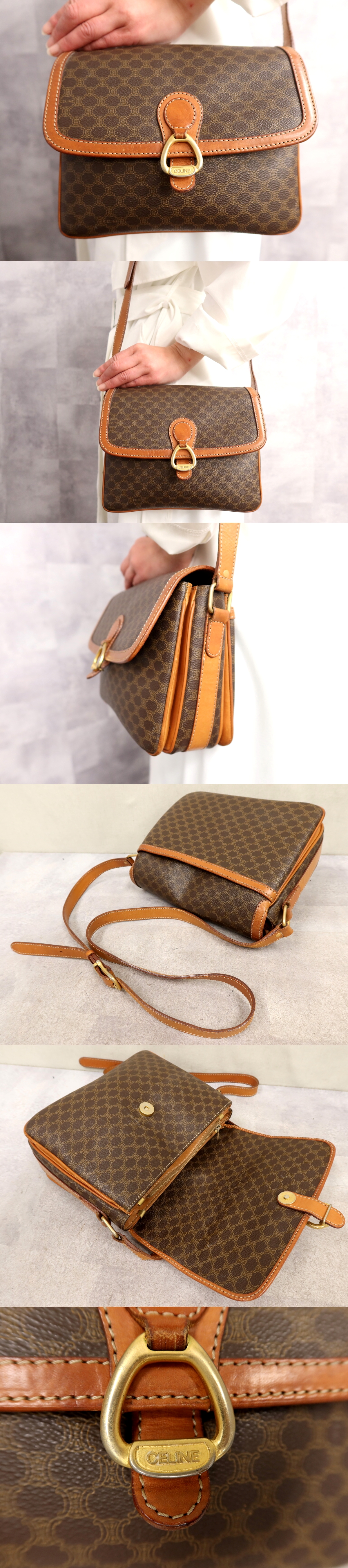 ●超美品●CELINE セリーヌ●マカダム●PVC カーフ レザー 本革●ショルダー バッグ●ブラウン系●ゴールド金具●斜め掛け●収納●Js66645 收藏