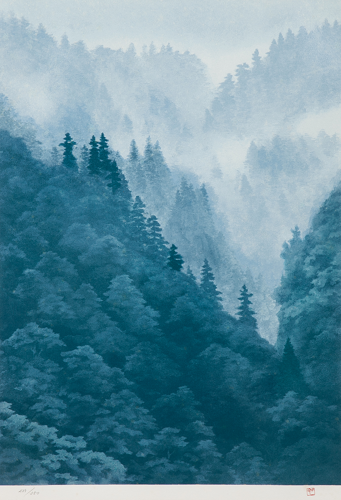 【1on1】真作 東山魁夷 『霧の山峡』 リトグラフ 限定350部 額装 ■ 文化勲章 文化功労者 日本芸術院会員 收藏