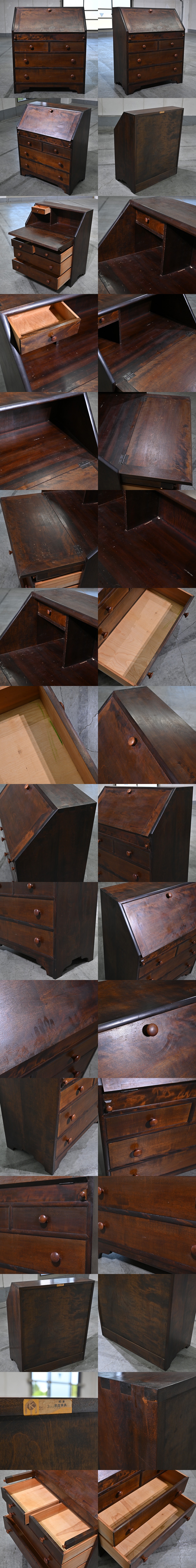 松本民芸家具 ライティングビューロー ミズメザクラ無垢材 チェスト デスク 収納 リビング ダイニング 書斎 クラシカル 水目桜_北海道 九州 收藏