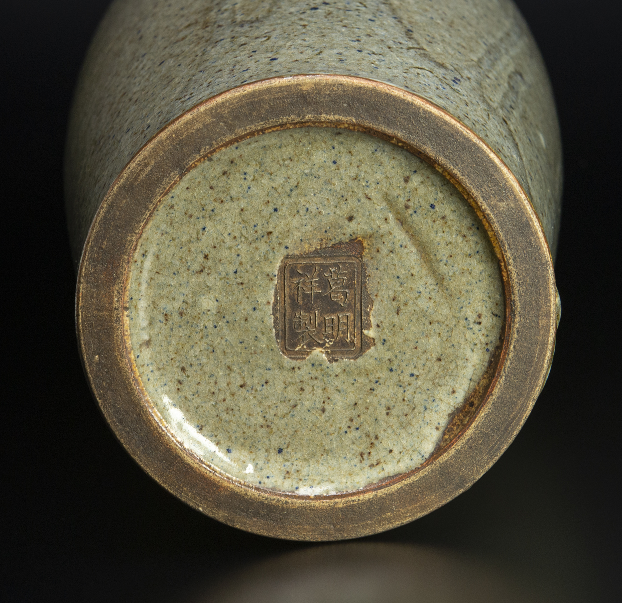 清 葛明祥制 宜鈞釉瓶 中国 古美術 收藏